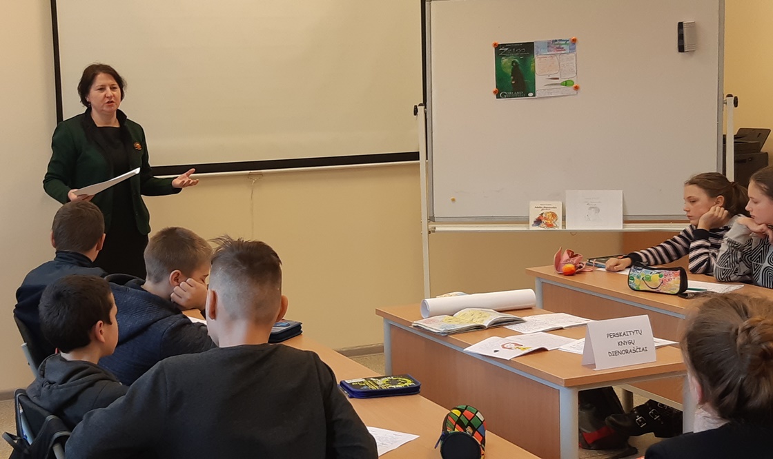 Akcijos iniciatorė bibliotekos vedėja Alma Žukauskienė. Pamoką vedė mokytoja Daiva Žilionienė.