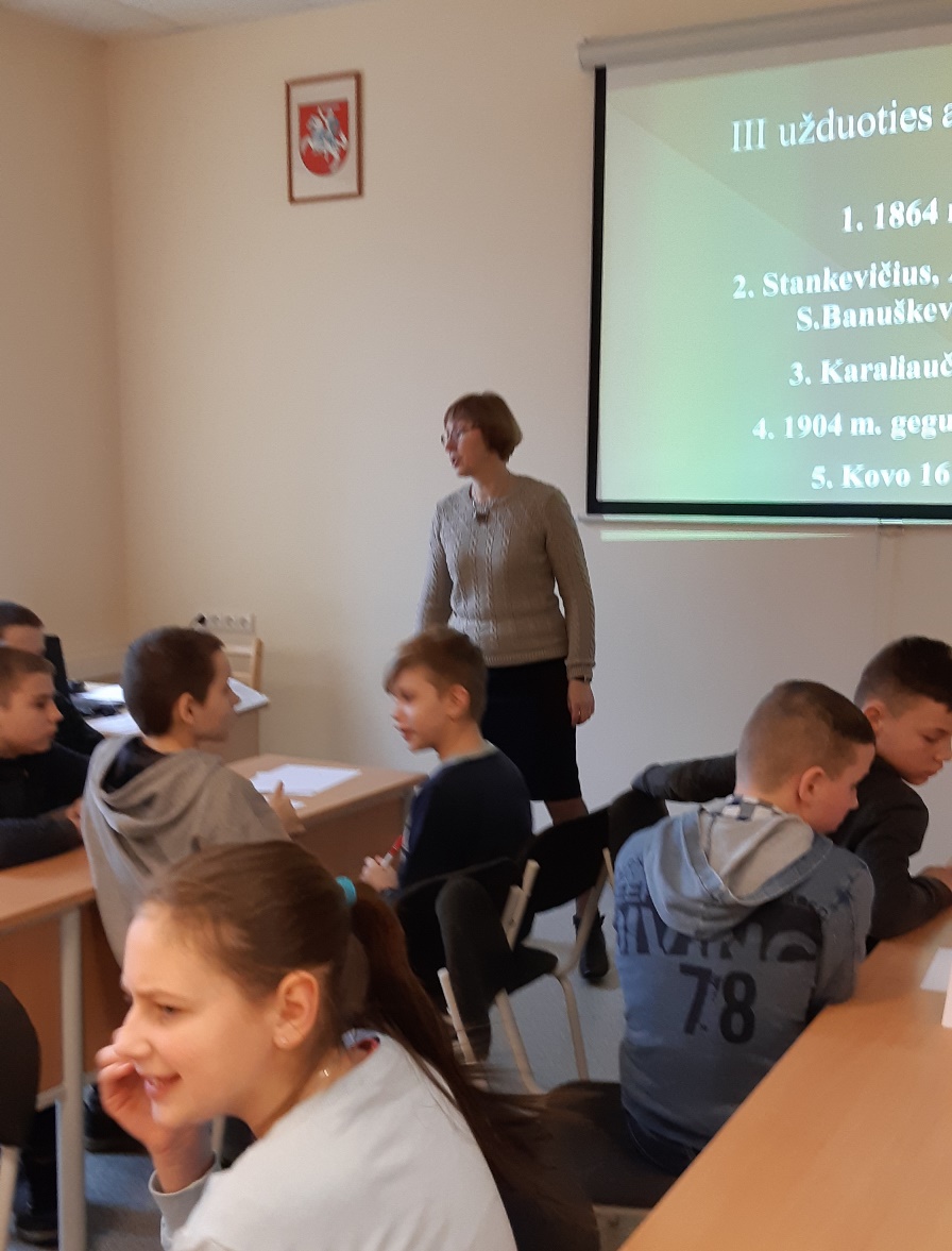 Kovo 15 d. gimnazijos bibliotekoje 5-6 klasių mokiniai dalyvavo pamokoje apie knygnešius. Klausėsi mokytojų Daivos Žilionienės ir Stasės Masilionienės pasakojimų apie pavojingą ir labai prasmingą knygnešių veiklą. Prisiminė Onuškio krašto knygnešius, vieno jų, Stasio Banuškevičiaus, provaikaitis Augustas mokosi šeštoje klasėje. Mokiniai dalyvavo viktorinoje apie knygnešius.