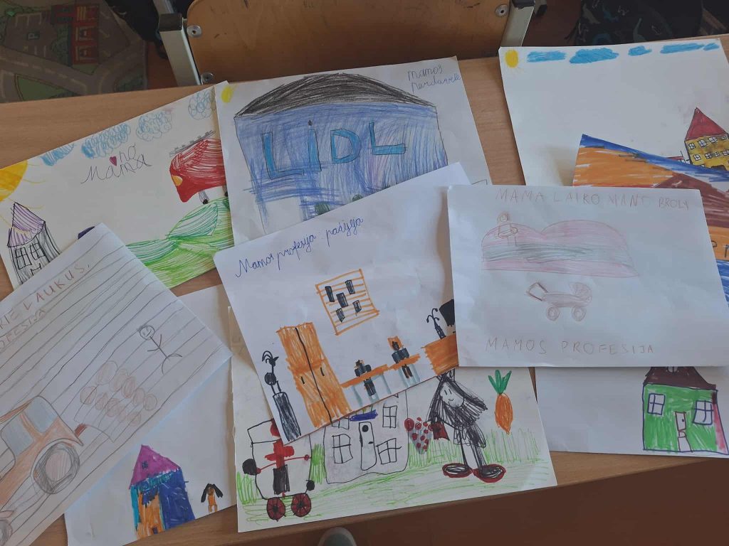 Vaikai dalijosi pasakojimais apie savo tėvus, jų darbą, aptarė, kokių savybių reikia įvairioms profesijoms. Pamokos metu mokiniai sužinojo, kad kiekvienas darbas yra svarbus, o žmonės savo profesiją renkasi pagal pomėgius, gebėjimus ir norus.