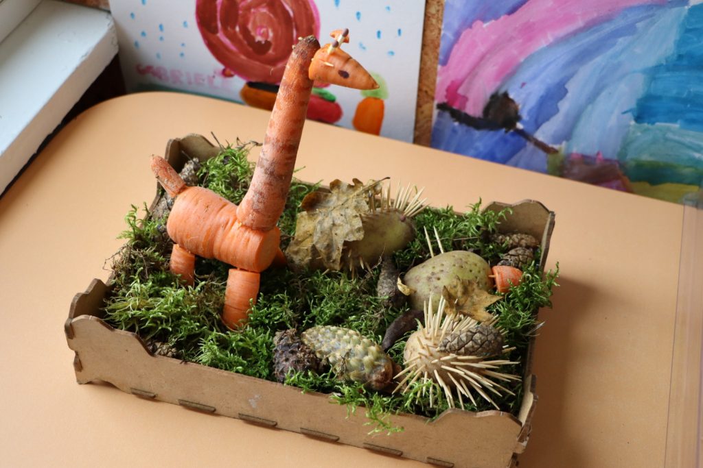 „Boružiukai” pasipuošė spalvingomis rudeniškomis karūnomis, dainavo daineles, šoko ir deklamavo eilėraštukus. Vaikučiai jau puikiai pažįsta rudens daržo ir sodo gėrybes, dalinosi savo mylimiausiais vaisiais ir daržovėmis.