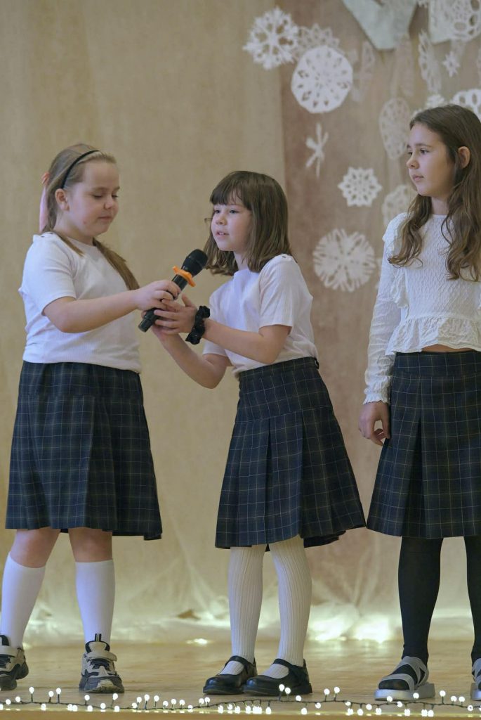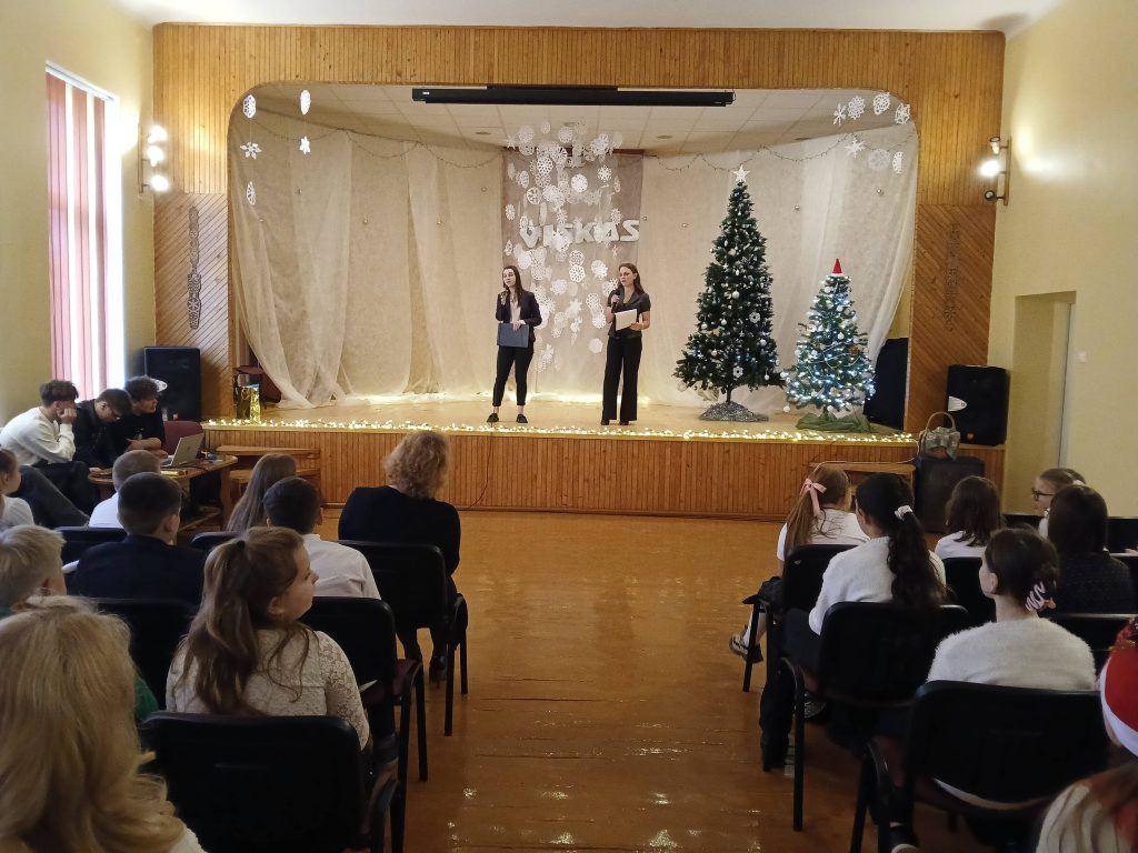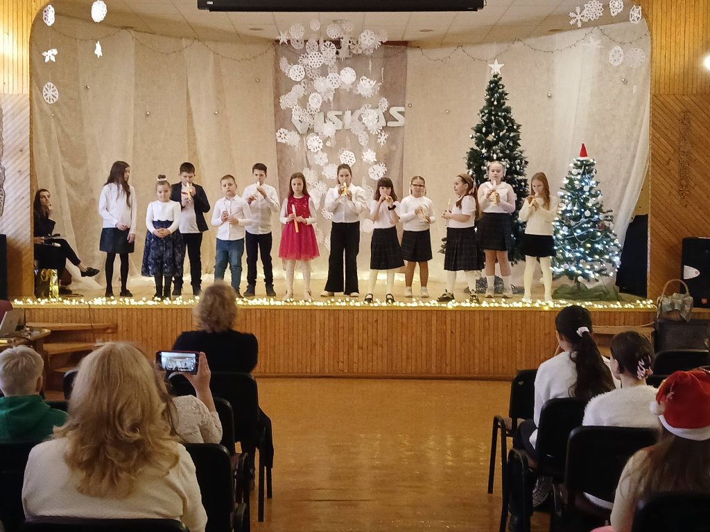 Gruodžio 19 – 23 dienomis mokinių tėvai lankėsi mokykloje, su auklėtojais ir dalykų mokytojais aptarė individualiai vaikų mokymosi rezultatus, mokymosi sąlygas, mokinių elgesį mokykloje. Gruodžio 23 dieną po pirmos pamokos mokyklos aktų salėje šėlo pradinių klasių mokiniai, juos aplankė Kalėdų senelis. Visi kartu žaidė, šoko, dainavo, džiaugėsi dovanomis. O paskutinėje 2025 metų šventinėje pamokoje ,,Ateina Kalėdos“ mokėsi visa mokyklos bendruomenė. Pasidžiaugėme per metus mokinių ir mokytojų nuveiktais darbais – įdomiomis pamokomis, apgalvotomis edukacijomis ir išvykomis, mokyklos tradiciniais renginiais, mokinių tėvų dėmesiu mokyklai. Direktorė Rima Blikertienė dėkojo už prasmingus darbus, linkėjo sėkmės, saugaus šėlsmo per šventes ir gražių darbų visiems. Mokyklos ansamblių ,,Dainorėliai“ ir ,,Šermukšnėlė“ lankytojai dainavo ir grojo šventinius kūrinius, skambiais balsais kvietė susikaupti, papuošti sielas šventei.