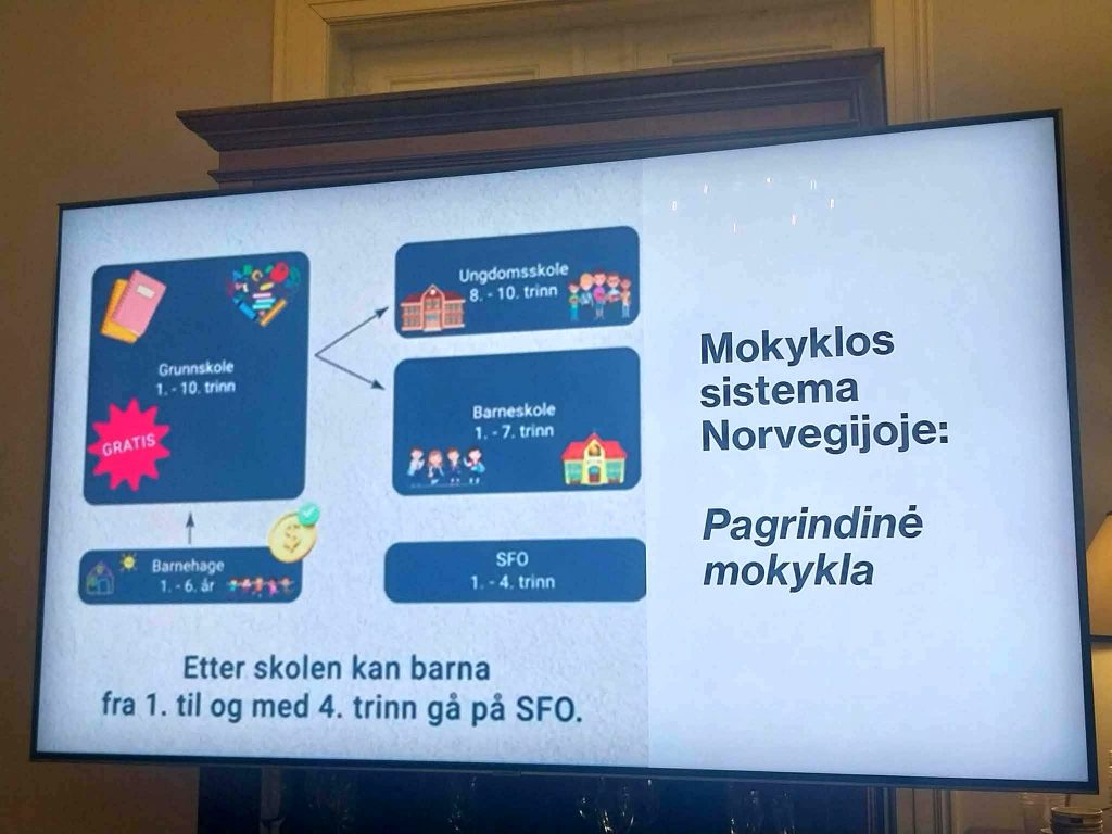 Lankėmės Lietuvos ambasadoje ir susitikome su lituanistinės mokyklos direktore ir edukologe praktike, išklausėme pranešimų apie mokyklos vadovų lyderystę, įtraukiojo ugdymo aplinkų įveiklinimą įvairių gebėjimų mokiniams. Lankėmės pagrindinėje ir vidurinėje mokyklose, Oslo mokslo centre, stebėjome praktines veiklas Lillestrøm miesto mokykloje ir Newton kambariuose. Sužinojome apie gabių mokinių paiešką, jiems organizuojamus mokymus moderniuose centruose, papildomas kelių dienų stovyklas, kuriose per veiklas sprendžiamos realios problemos. Mokinys nuolat skatinamas mąstyti apie procesą: kuria problemos sprendimo planus, pasirenka veiklos kryptį, pristato veiklą, siūlo, ką galėtų tobulinti.