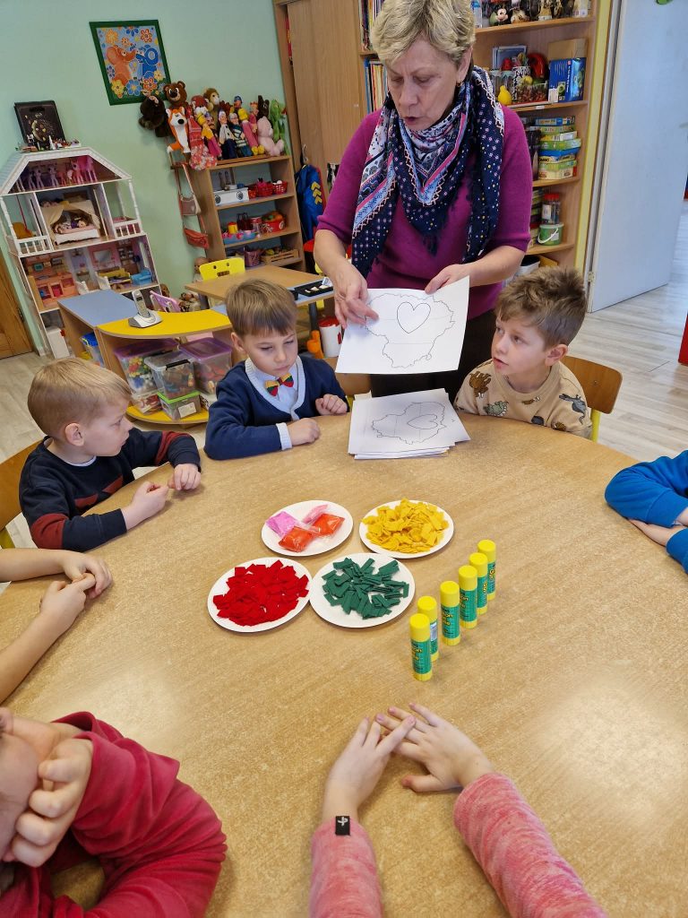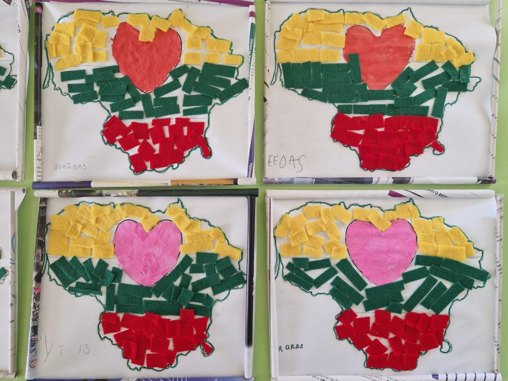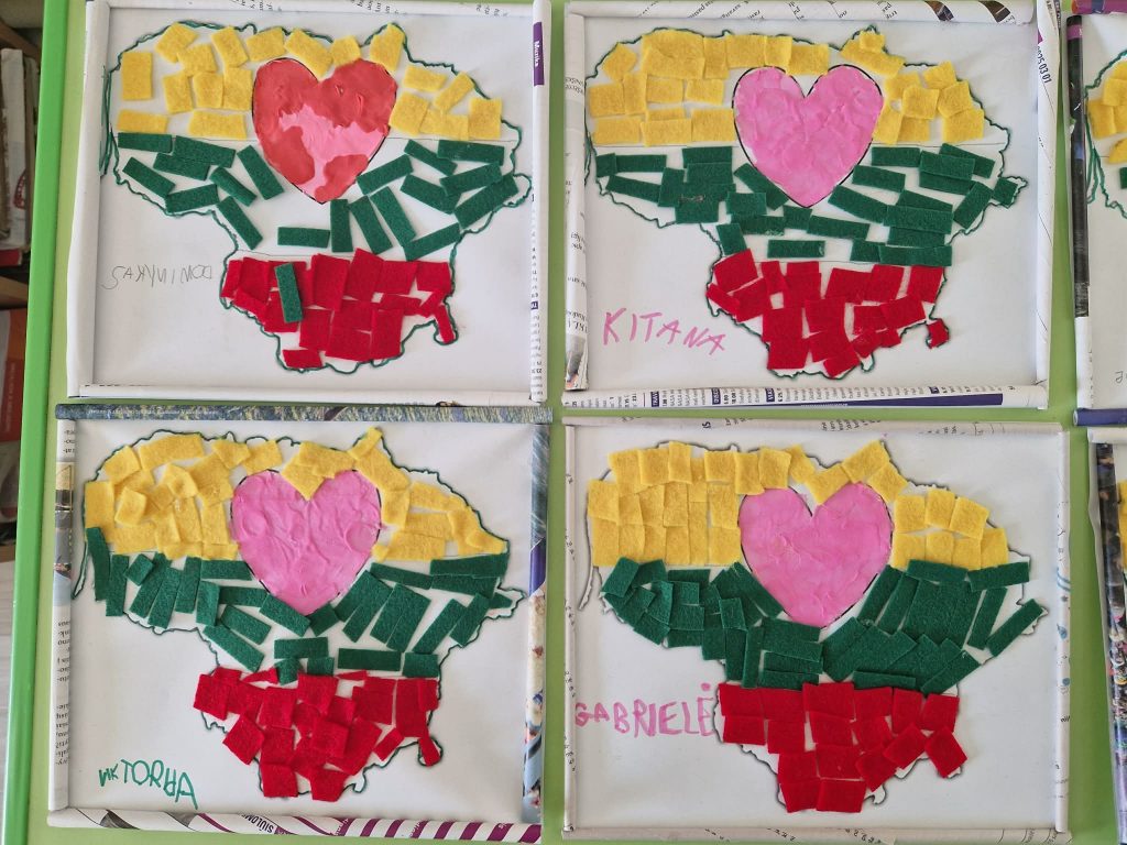 Patriotiškumo pamoka persikėlė į kūrybines dirbtuves: vaikai pasinėrė į edukaciją „Geltona, žalia, raudona“. Panaudodami Lietuvos vėliavos spalvas , jie kruopščiai puošė Lietuvos kontūrus, taip mokydamiesi ne tik istorijos, bet ir lavindami savo kūrybiškumą. Tai ne tik smagi veikla mažiesiems, bet ir svarbus žingsnis ugdant jaunosios kartos pilietiškumą bei pagarbą savo šalies istorijai.