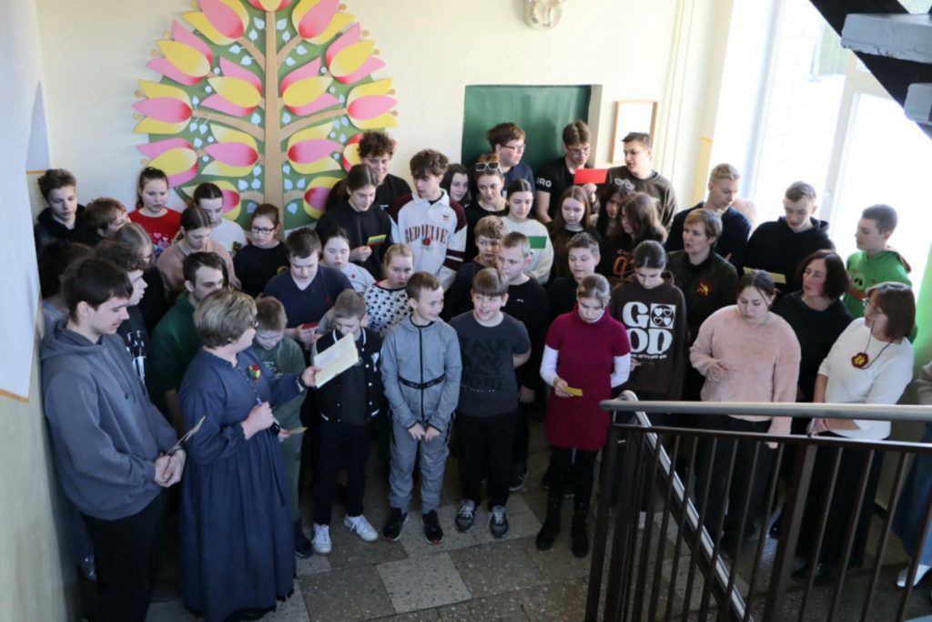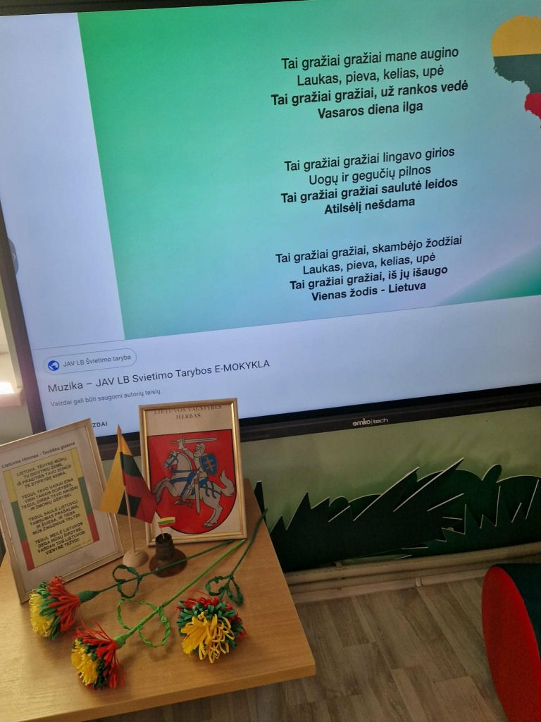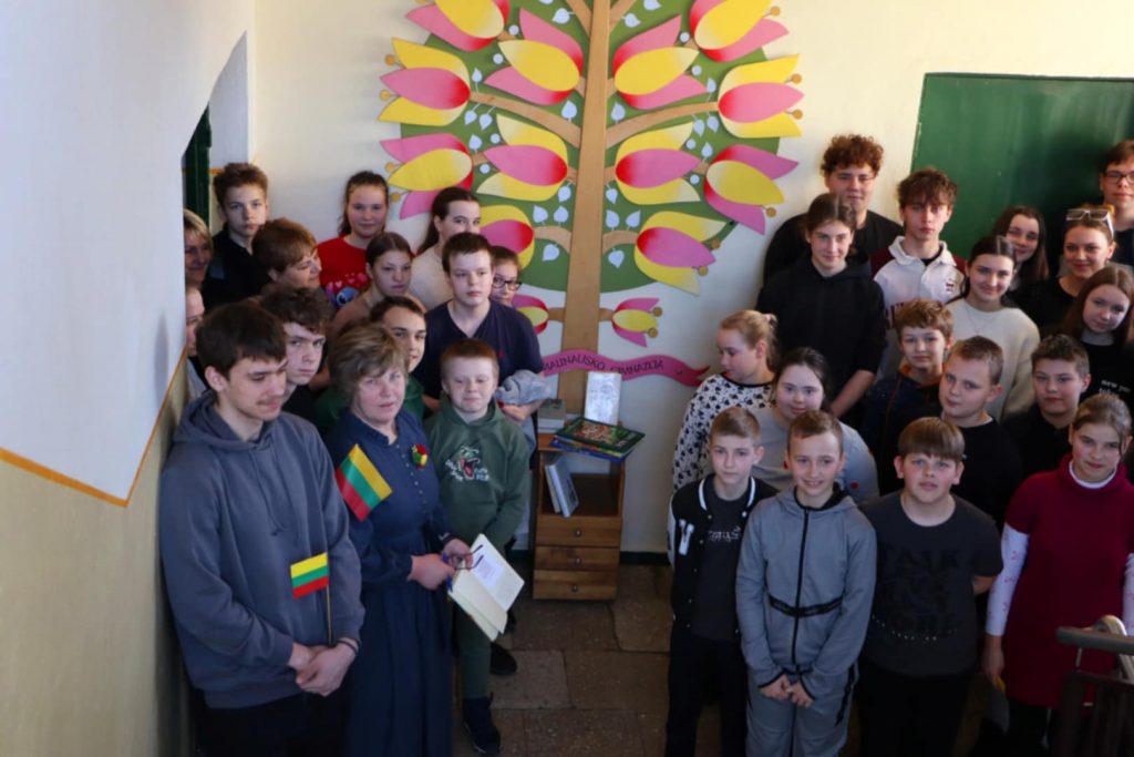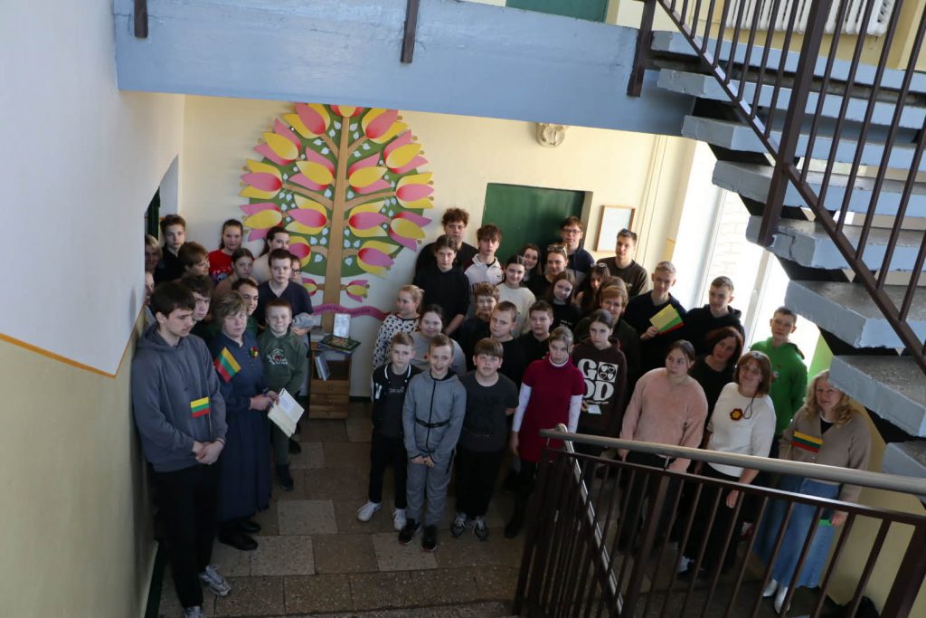 Eilėraščio skaitymas kartu – tai būdas įsiklausyti į poeto žodį, išgyventi eilėraščio prasmę, pajusti bendrystę. Trijose vietose skambėjo eilėraščio posmai. Ikimokyklinio ir priešmokyklinio ugdymo grupių ugdytiniai Trakų kultūros ir meno centro Onuškio padalinio salėje kūrybinės pilietiškumo akcijos „Plazdėk, trispalve Lietuvos“ metu kartu su mokytojomis nuoširdžiai kartojo eilėraščio žodžius. 1-4 klasių mokiniai eilėraštį skaityti sustojo laiptinėje. 5-10 klasių mokiniai susibūrė prie simbolinio mokyklos ženklo – žydinčio medžio, kurį su mokiniais sukūrė ilgametis dailės mokytojas Vydas Kasperavičius.