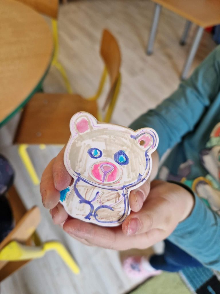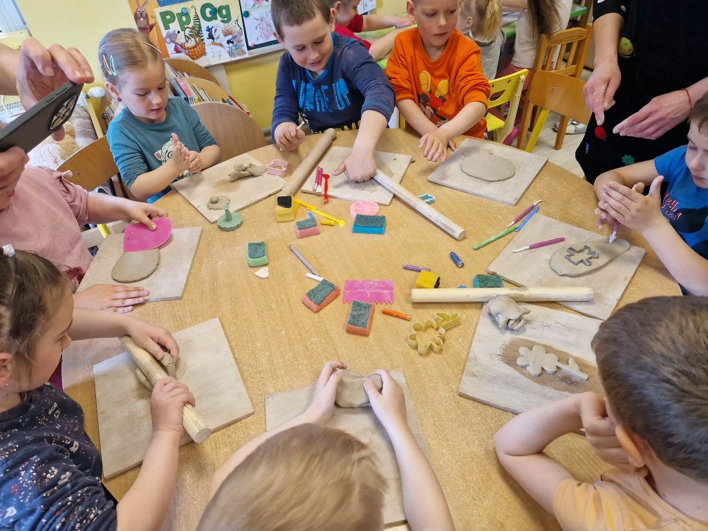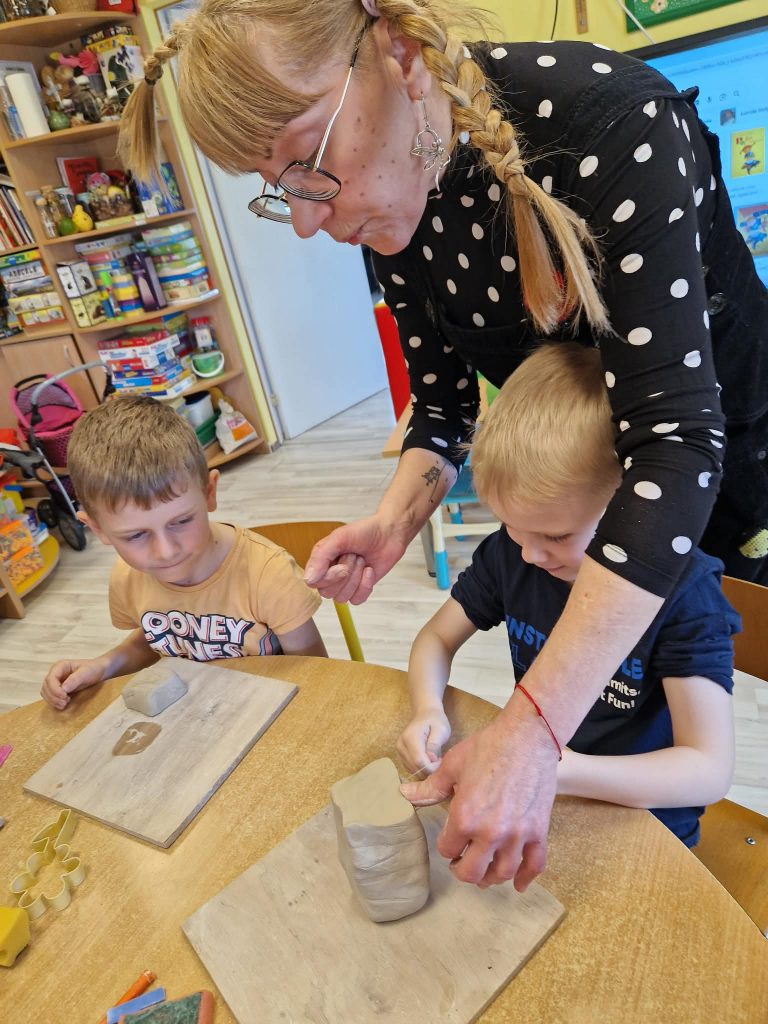Šis edukacinis rytmetys užsitęsė iki pat pietų ir paliko neišdildomų įspūdžių. Vaikai net po poilsio pietų su smalsumu stebėjo džiūstančius savo gaminius ir tęsė kūrybinius darbus.