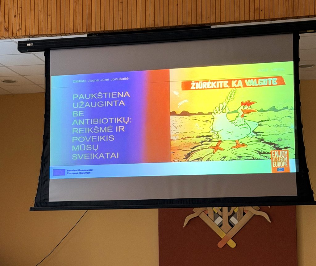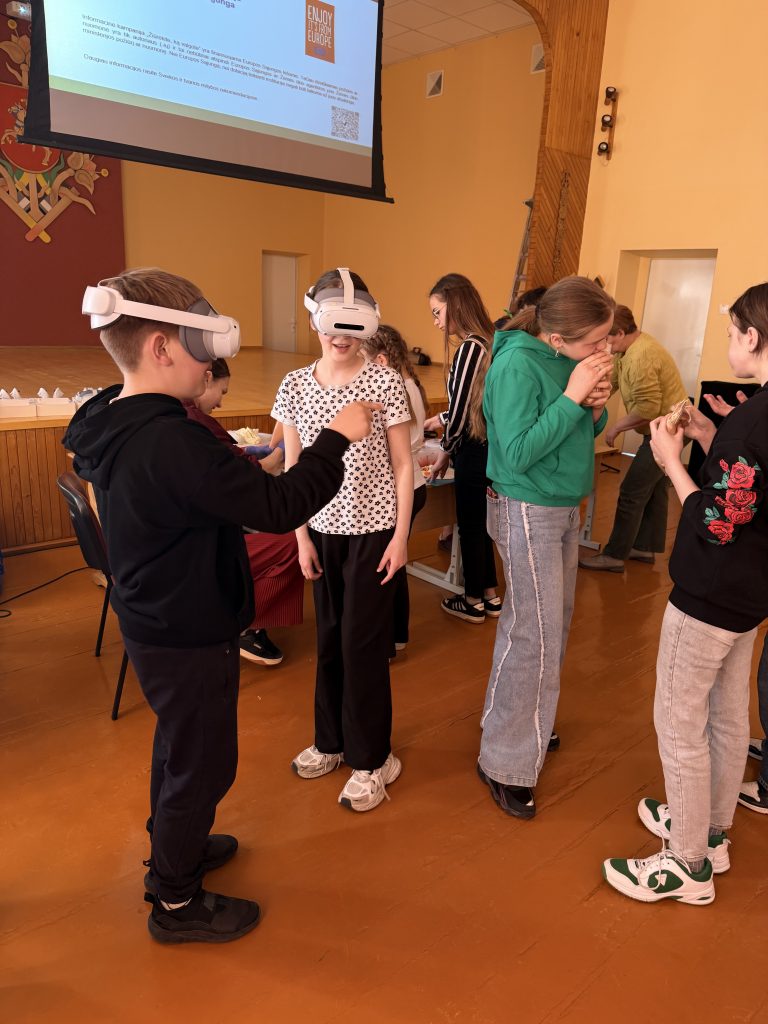 Dar viena išskirtinė patirtis – galimybė pasinaudoti VR akiniais. Mokiniai virtualiai „nukeliavo“ į ūkį ir galėjo pamatyti, kaip auginamos vištos be antibiotikų. Tai leido geriau suprasti maisto kilmę, gyvūnų auginimo sąlygas ir atsakingo ūkininkavimo svarbą. Ši edukacinė veikla ne tik praplėtė mokinių žinias, bet ir paskatino susimąstyti apie kasdienius mitybos pasirinkimus bei jų poveikį sveikatai.